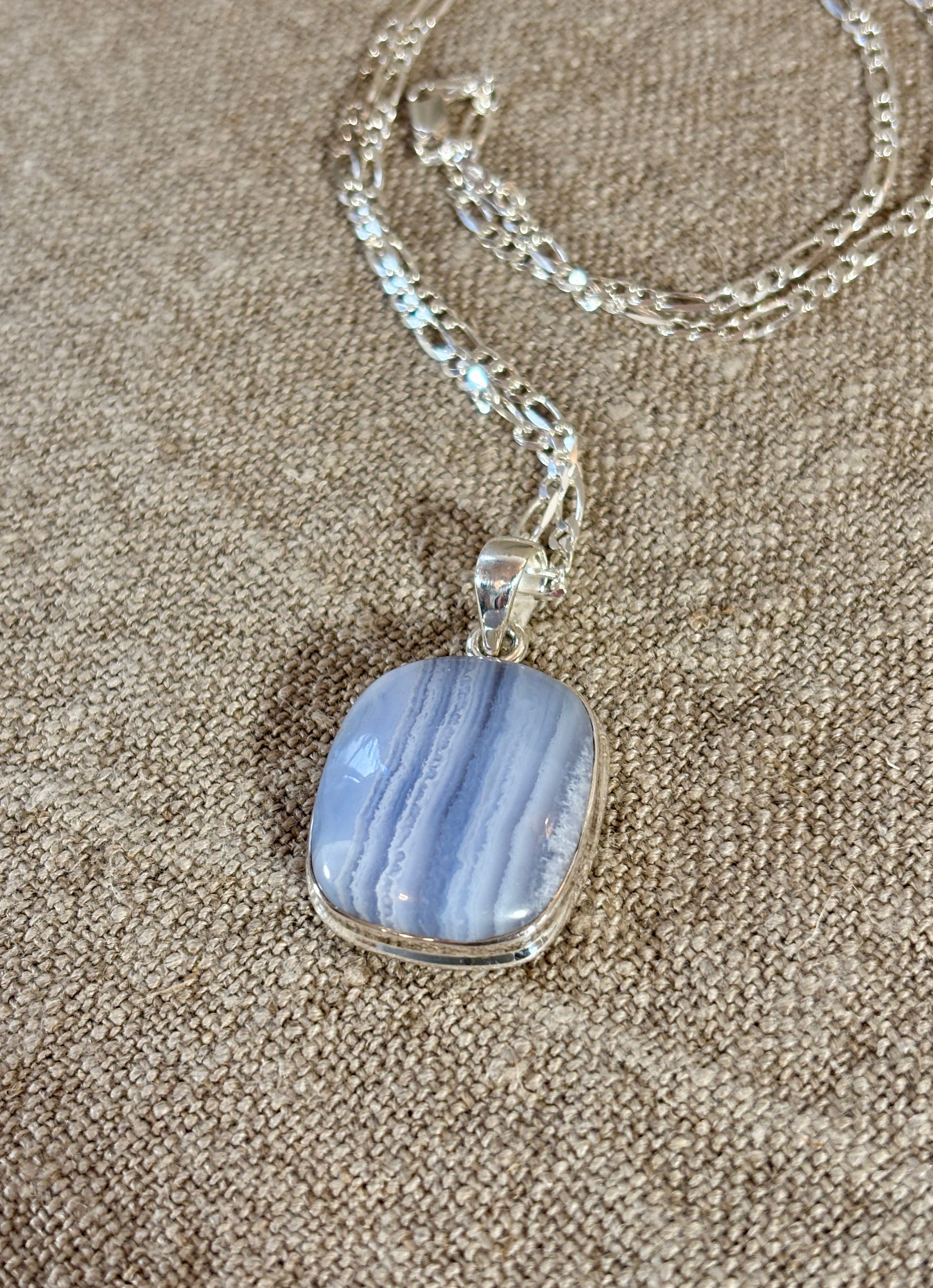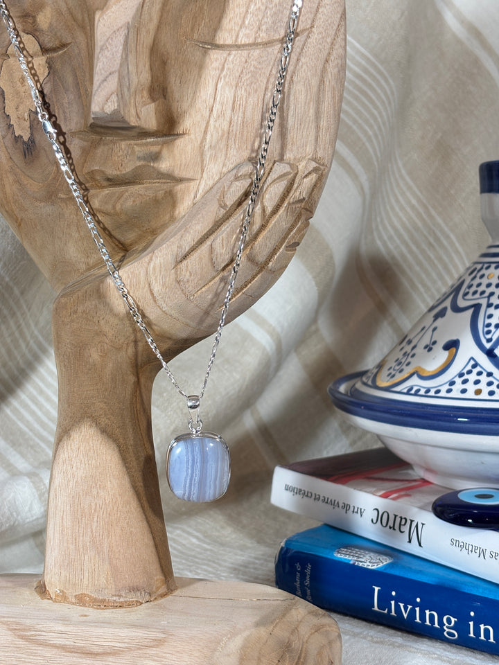 The result is an exceptional yet understated.. Silver and Blue Chalcedony gemstone pendant that can be worn with any outfit during the day.. as well as to enhance the most elegant outfit for a special evening out. It is simply as precious and unique as you are !