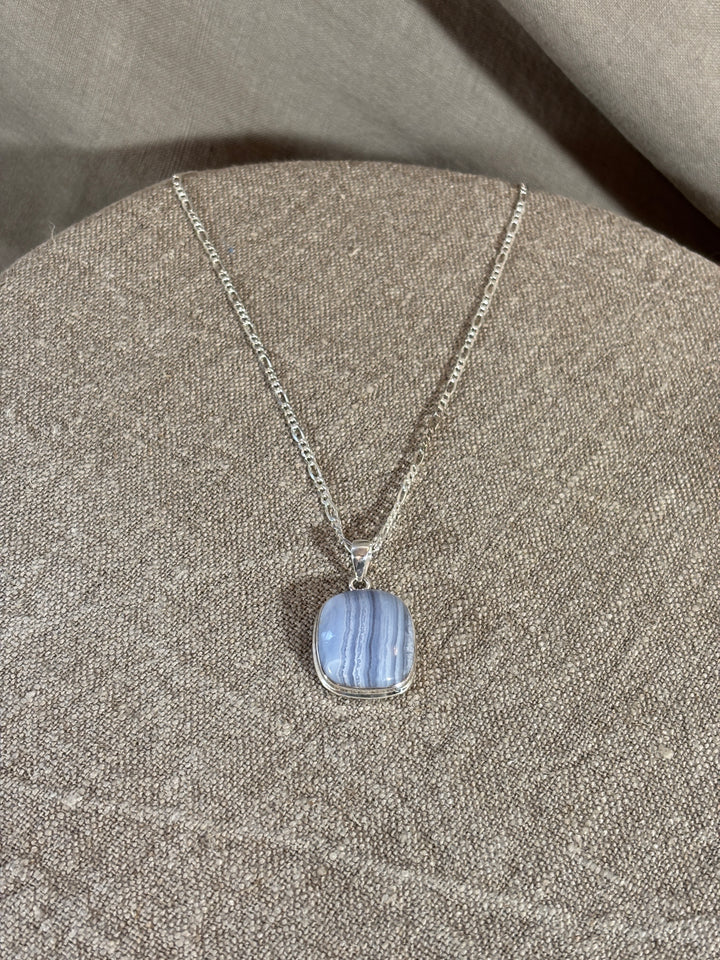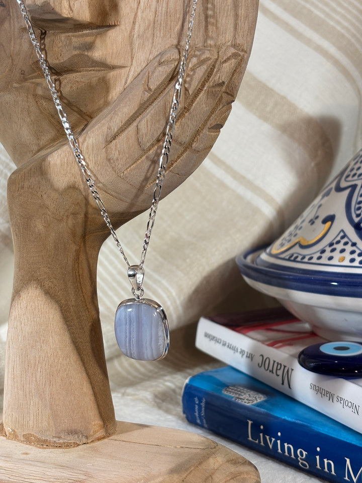 Blue Chalcedony & Silver Rectangular Gemstone Pendant
