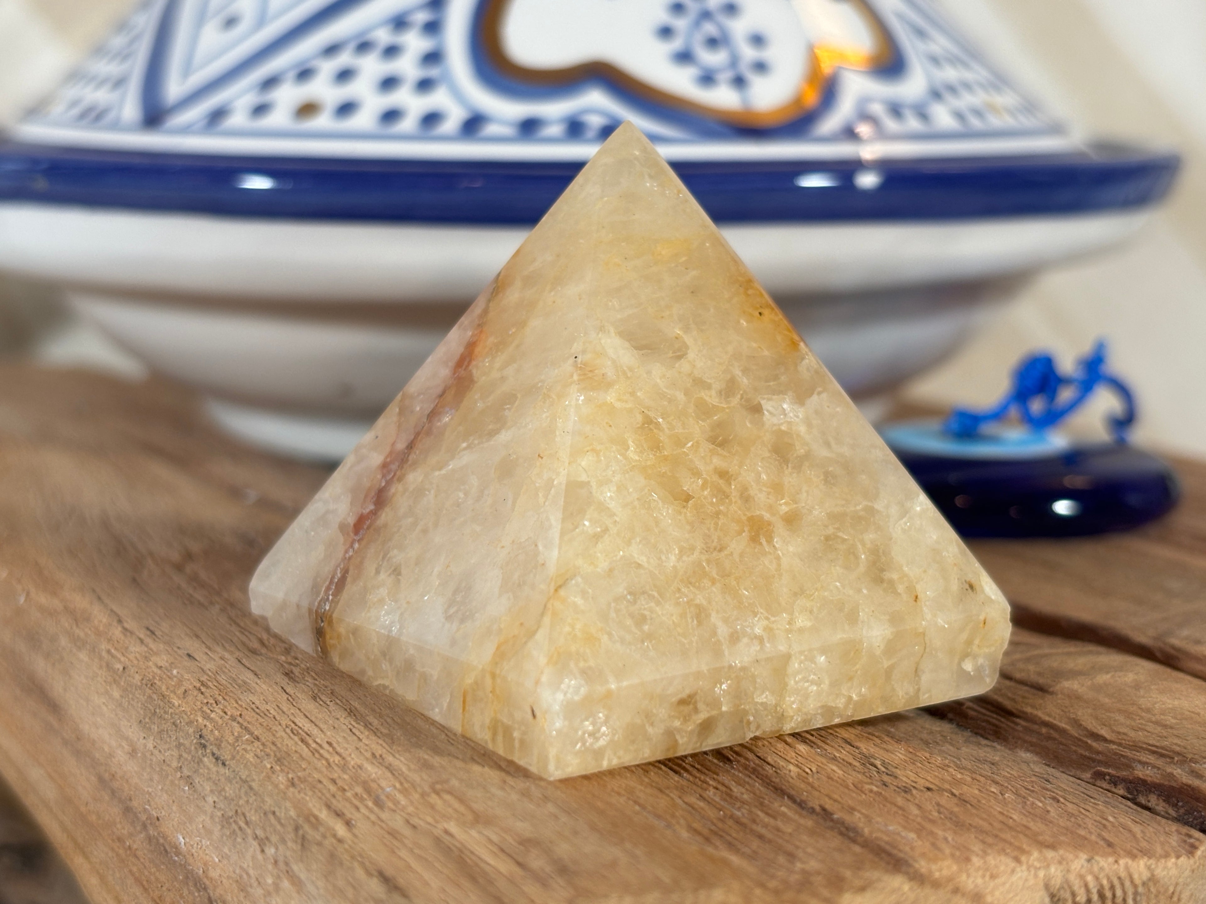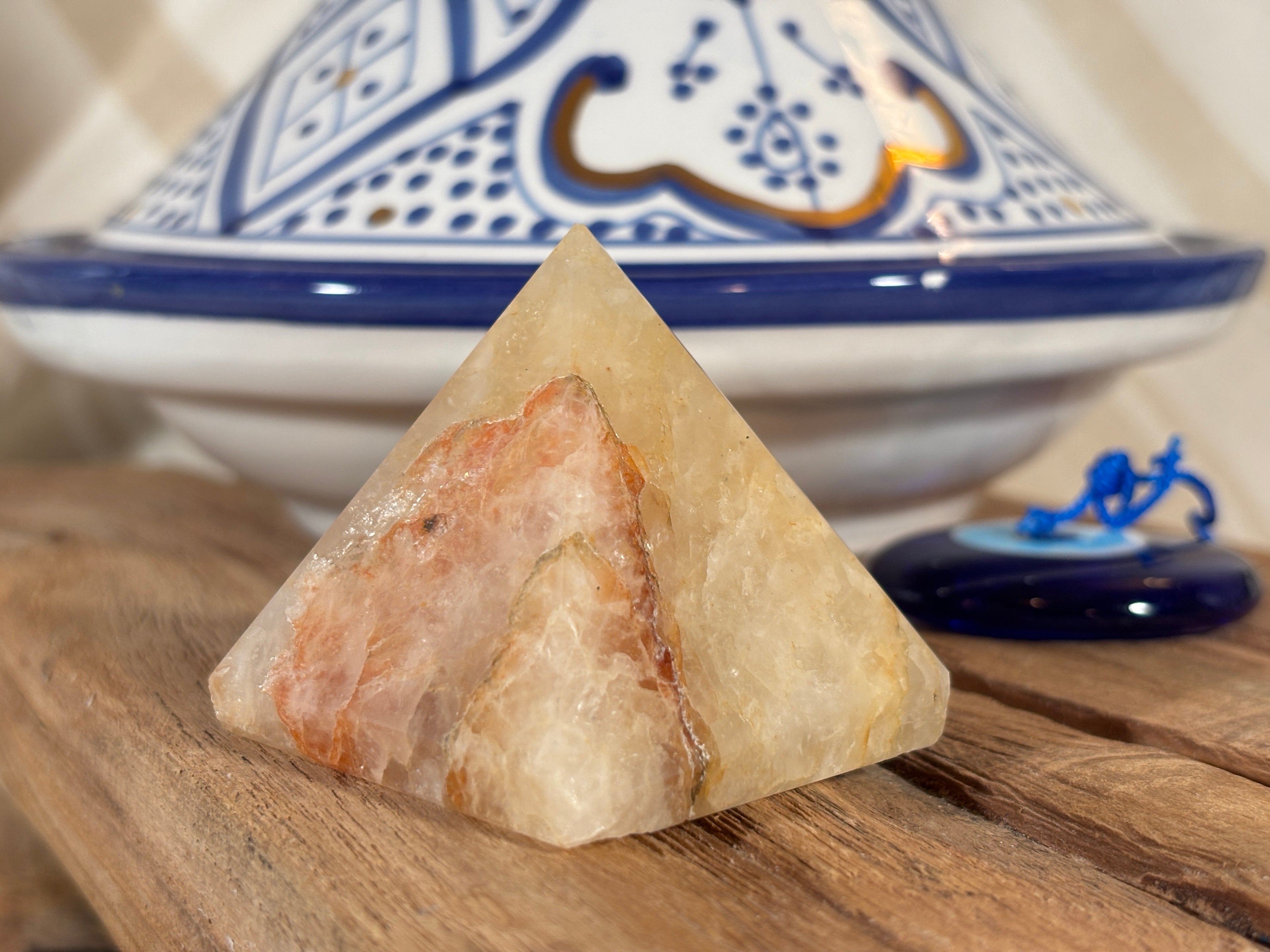 This handcrafted Golden Healer Quartz Pyramid.. has been meticulously carved from Golden Quartz crystal by expert artisans.. each carefully polished to enhance its natural beauty.