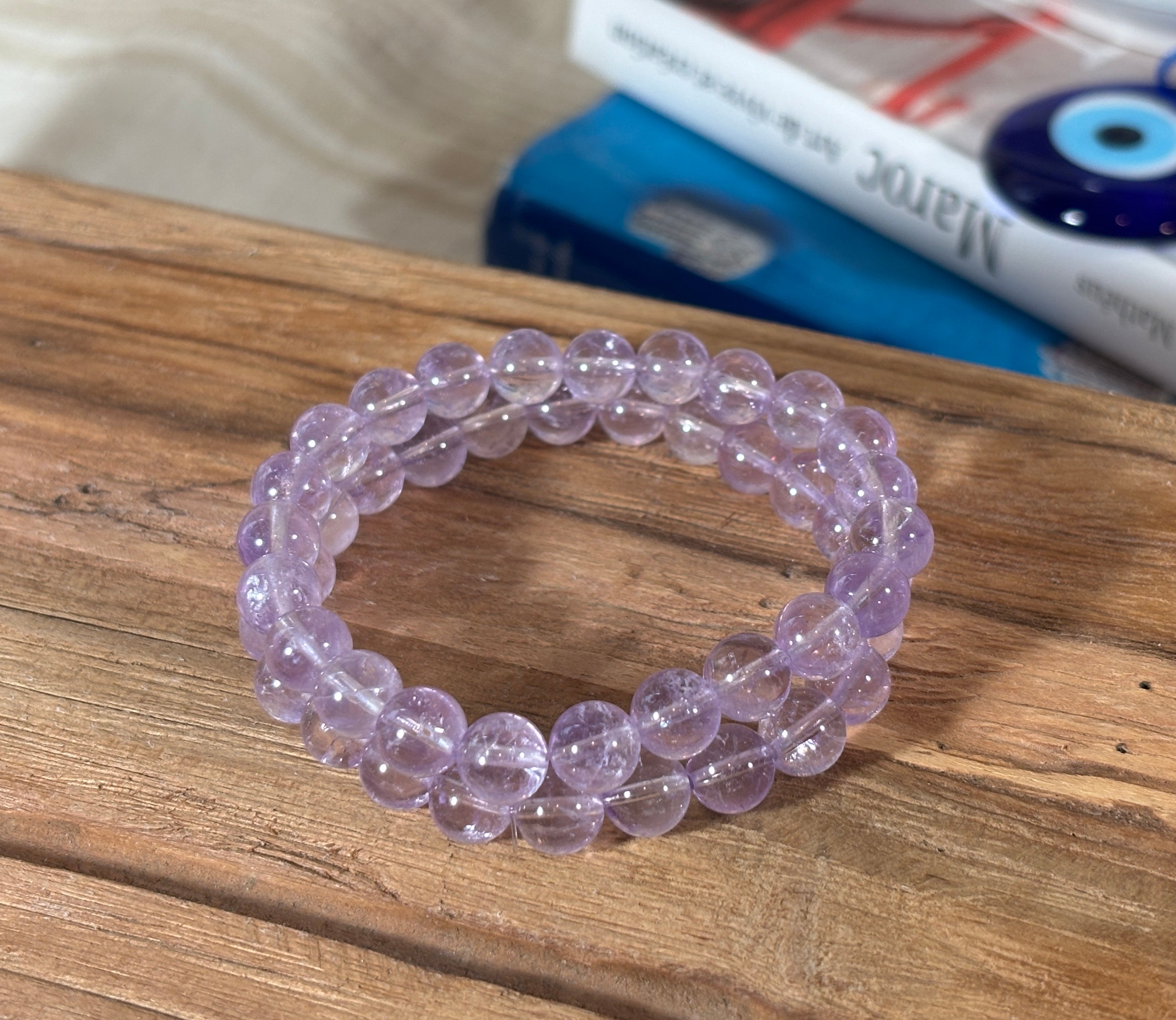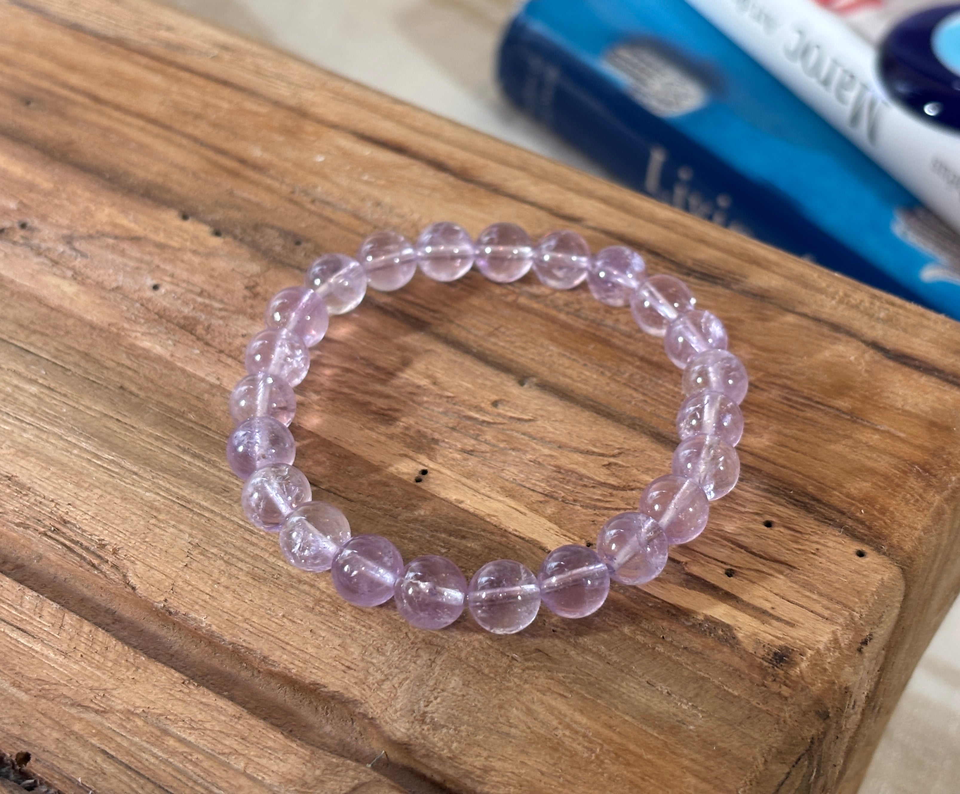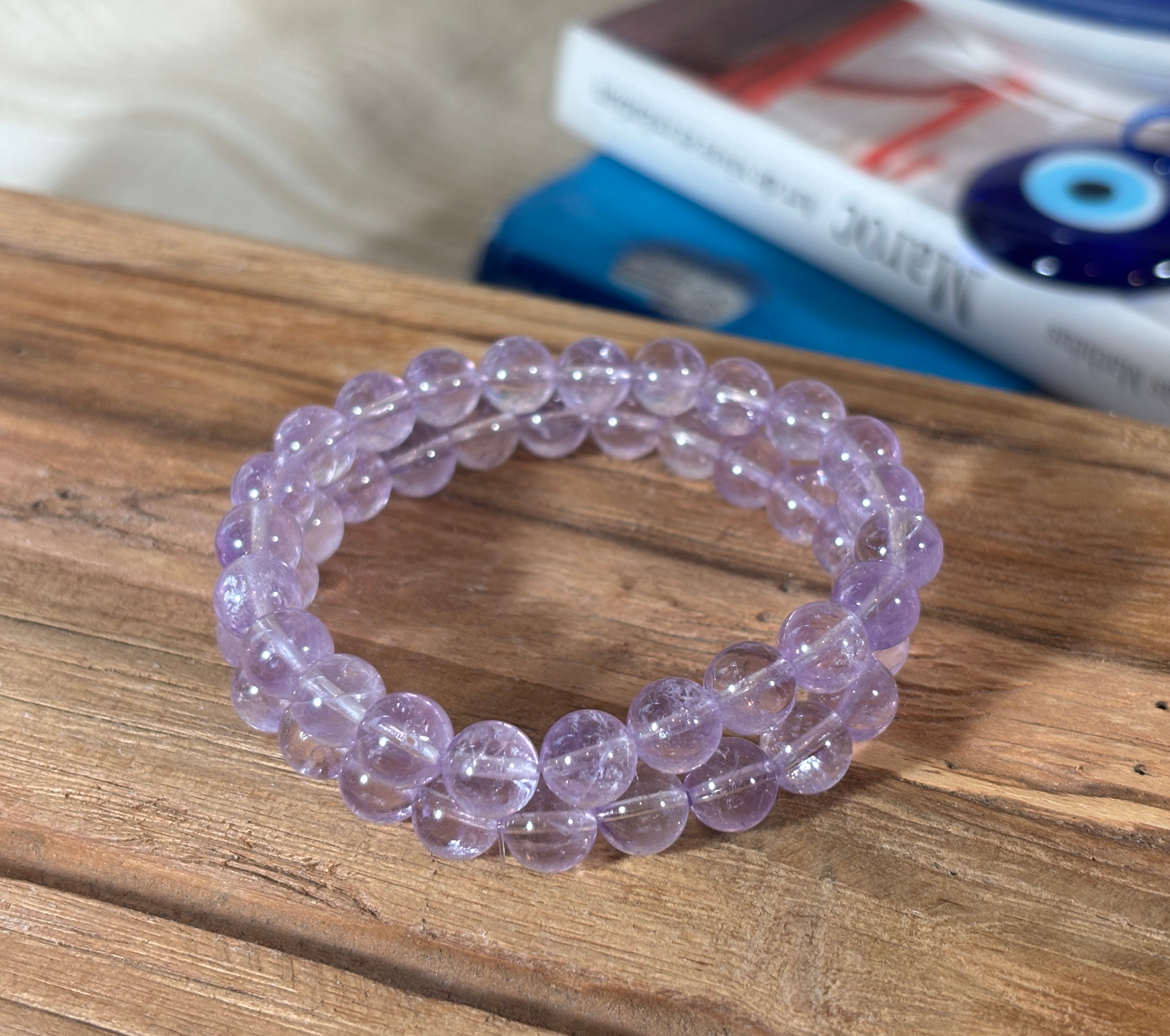 Lavender Amethyst Crystal Stone Bead Bracelet.. made with 8mm * round, smooth gemstone beads in a luminous, delicate shade of light purple.. a timeless gift for yourself or loved ones!