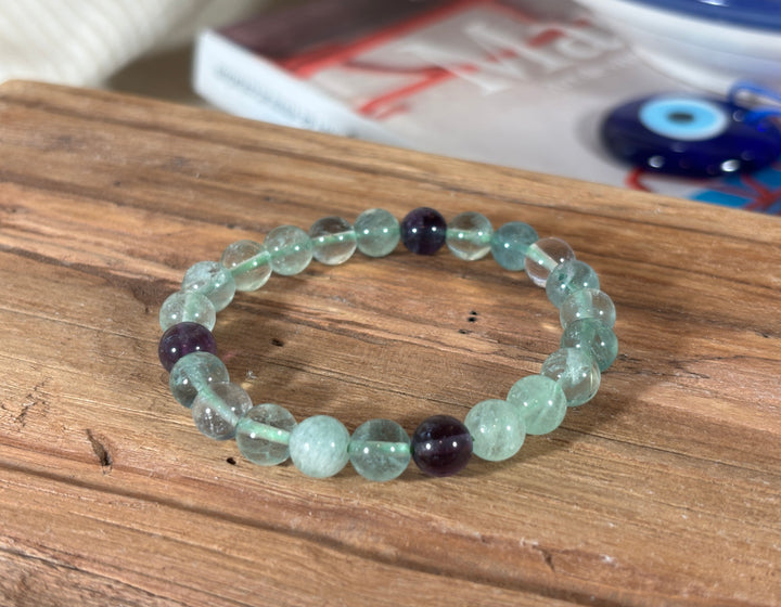 Rainbow Fluorite Round Bead Bracelet