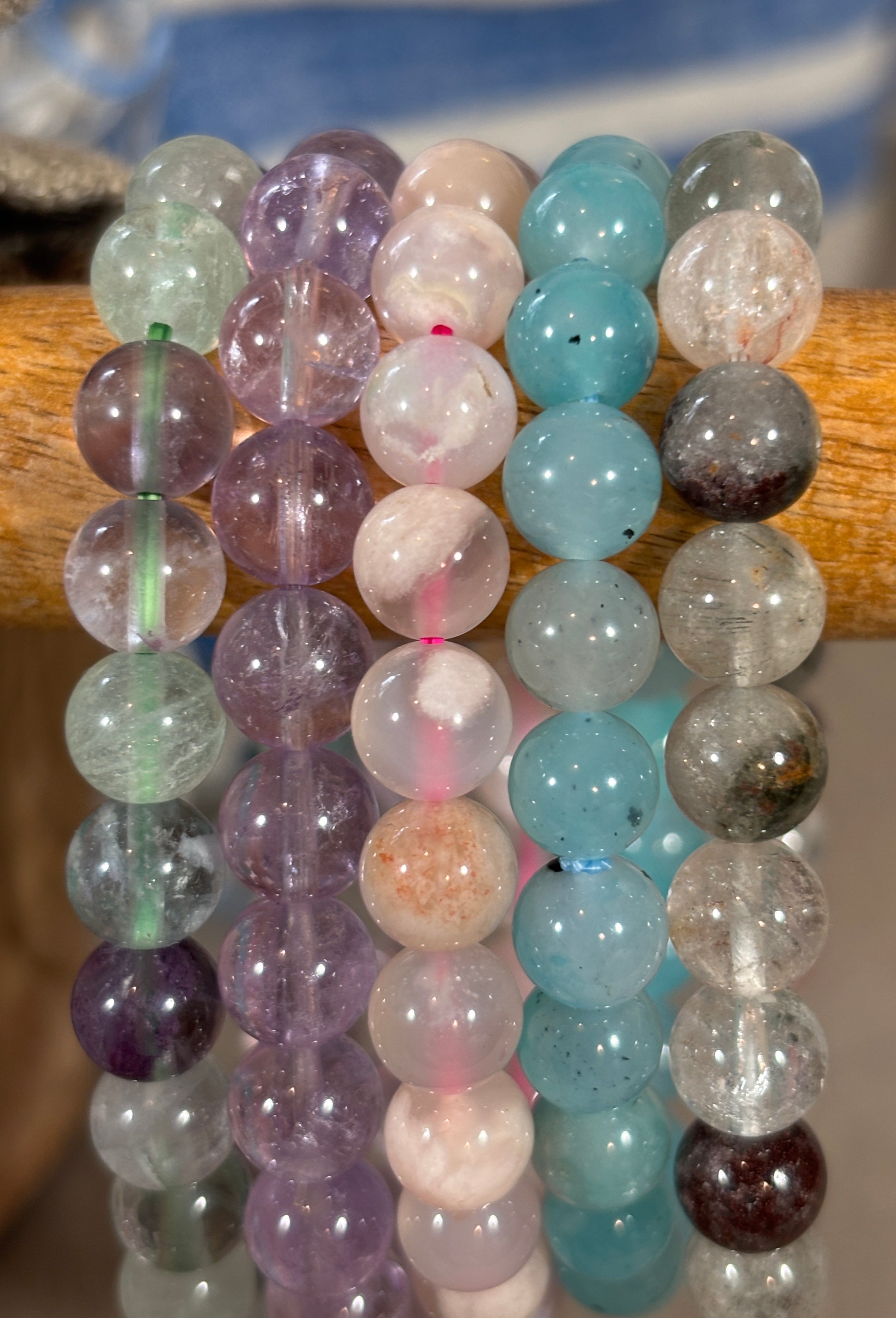 Change your look every time.. by mixing and matching different colored gemstone bracelets together. Bring out your creative side !