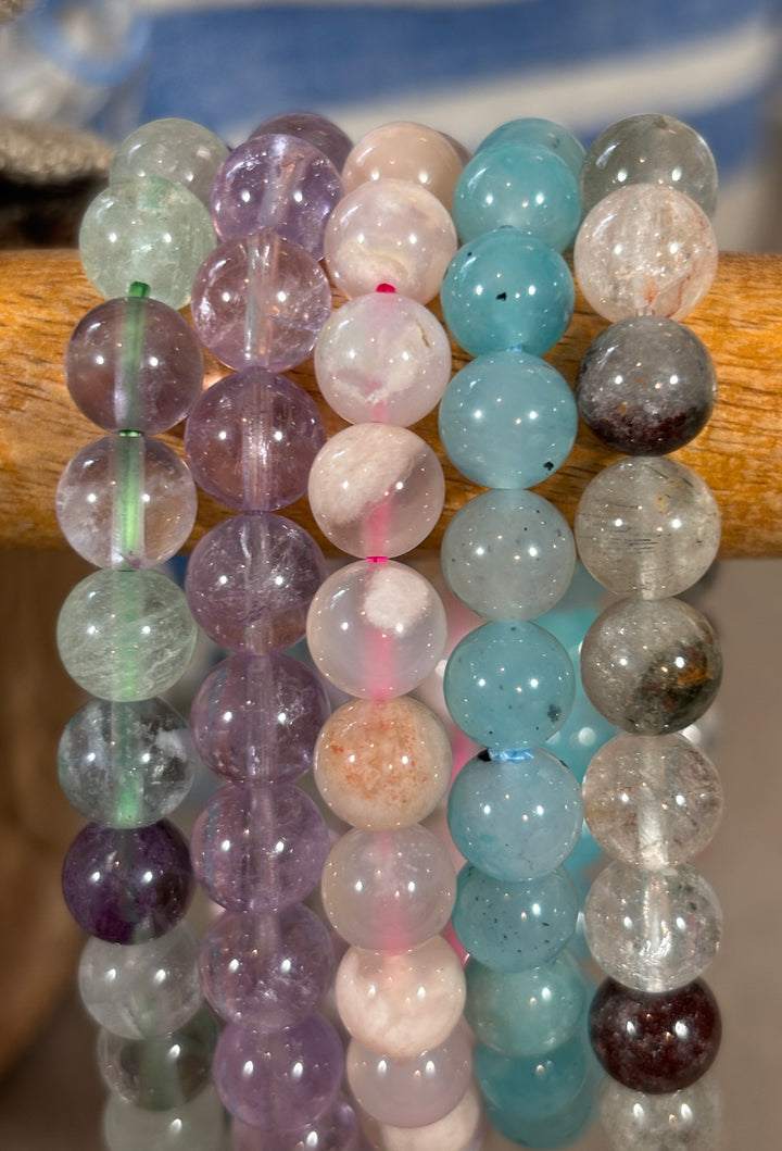 Rainbow Fluorite Crystal Stone Bead Bracelet.. made with 8mm* round, smooth gemstone beads.. a beautiful, irresistible gift for yourself or loved ones!