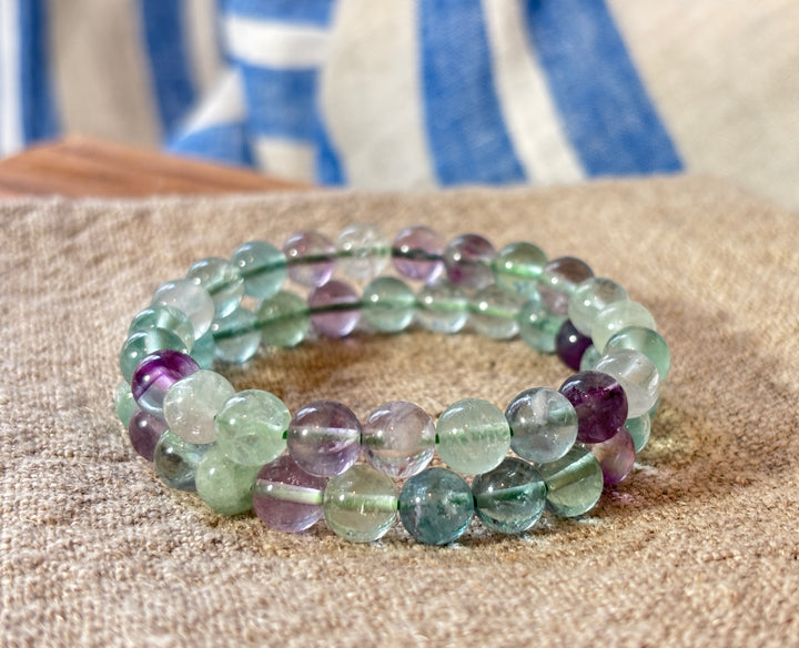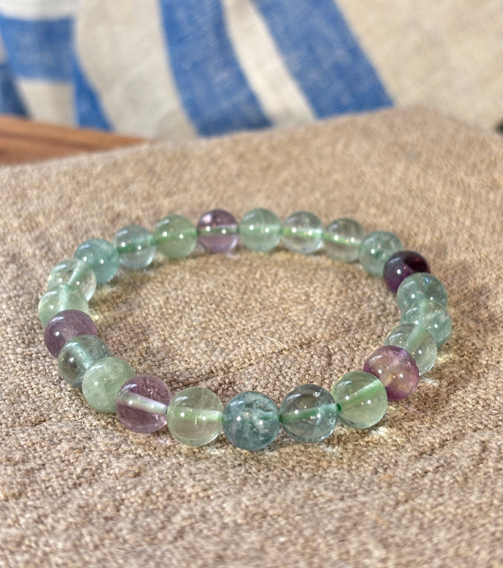 Rainbow Fluorite Round Bead Bracelet